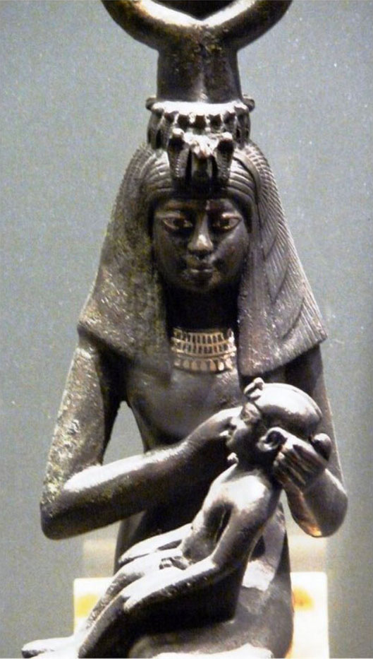 World’s first religious trinity Osiris father, Isis mother and Horus son dates back to 7,000 b.c. Osiris, Isis and Horus architectural cosmology ruminates in the 3 Great Pyramids cognitive quantum physics. Horus virgin birth occurred on the sun’s Winter Solstice December 25th. When daylight becomes longer hence the child of virgin birth bringing forth illumination. Black statues of Isis and Horus were the Archetype for Madonna and Child. Grove of Isis, Temple Para de Isidos, Our Lady, Notre Dame