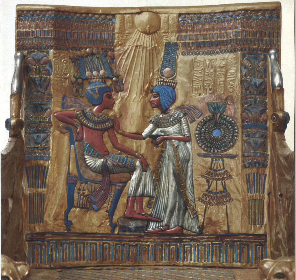 Relief on Golden Throne of King Tutankhaton and Queen Ankhesenaton. It is considered one of the world’s greatest works of art. The love and trust protrayed by the relief is undeniable.